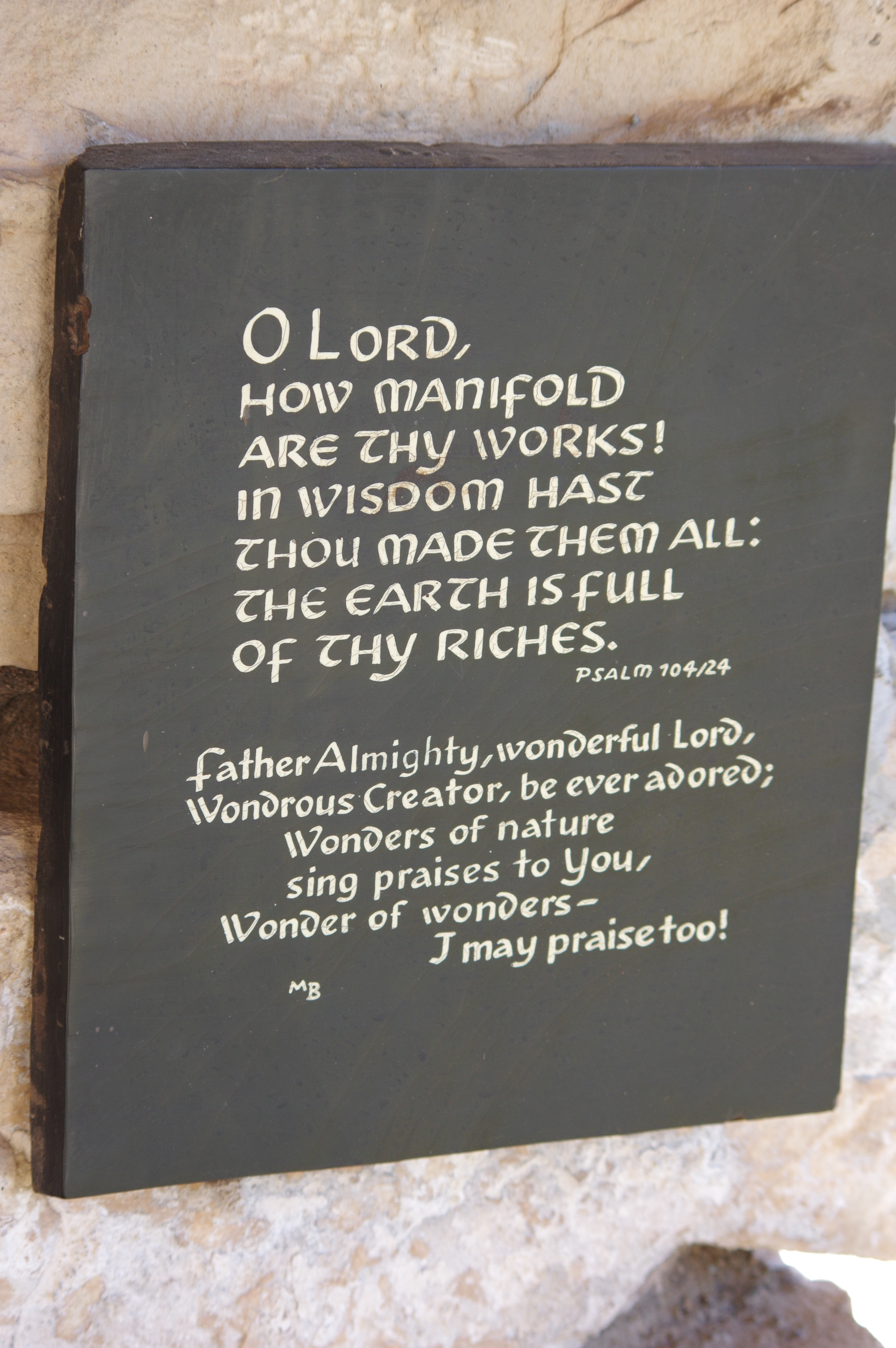 While the theories of the Grand Canyon formation range from occurring over millions of years to happening as a result of the more recent cataclysmic world-wide flood recorded in the Bible, no one can attest with certainty but God. Therefore, for this humble rural pastor, my observation of the Grand Canyon elicits praise for His handiwork as this plaque attests from Psalm 104:24.